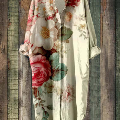 Women’s 3D Printed Fashionable Loose-Fit Lapel Dress | High-Sense Digital Print Evening Gown | Trendy Minimalist Artistic Silhouette Dress | Luxury-Label Statuesque Casual-Luxe Wear | 2026 High-Fashion Radiant Artistic Dress
